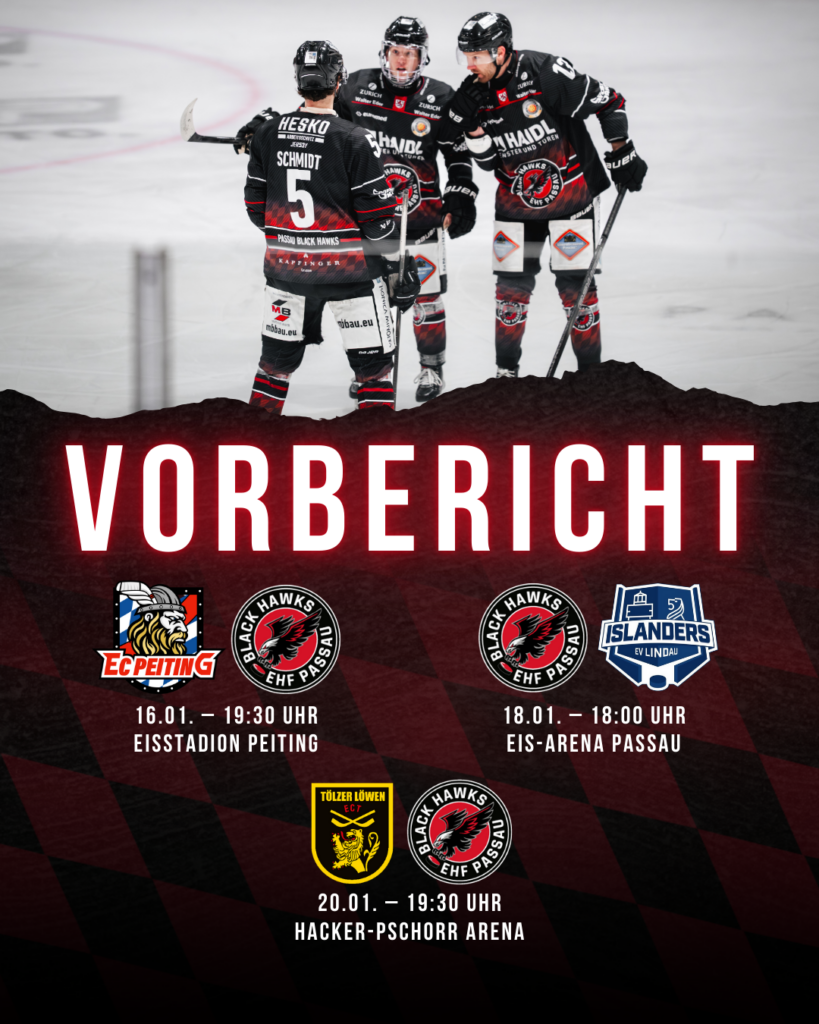 Black Hawks vor intensivem Vorweihnachtswochenende 🦅⚫️🔴 Nach zwei erfolgreichen Spielen gegen Heilbronn und Selb in der vergangenen Woche mussten die Black Hawks einen Rückschlag gegen Memmingen hinnehmen. Am darauffolgenden Sonntag zeigten sich die Passauer jedoch hoch motiviert und siegten mit 3:2 in Füssen. Nun stehen die Black Hawks vor einem intensiven Vorweihnachtswochenende: Auswärts treffen die […]