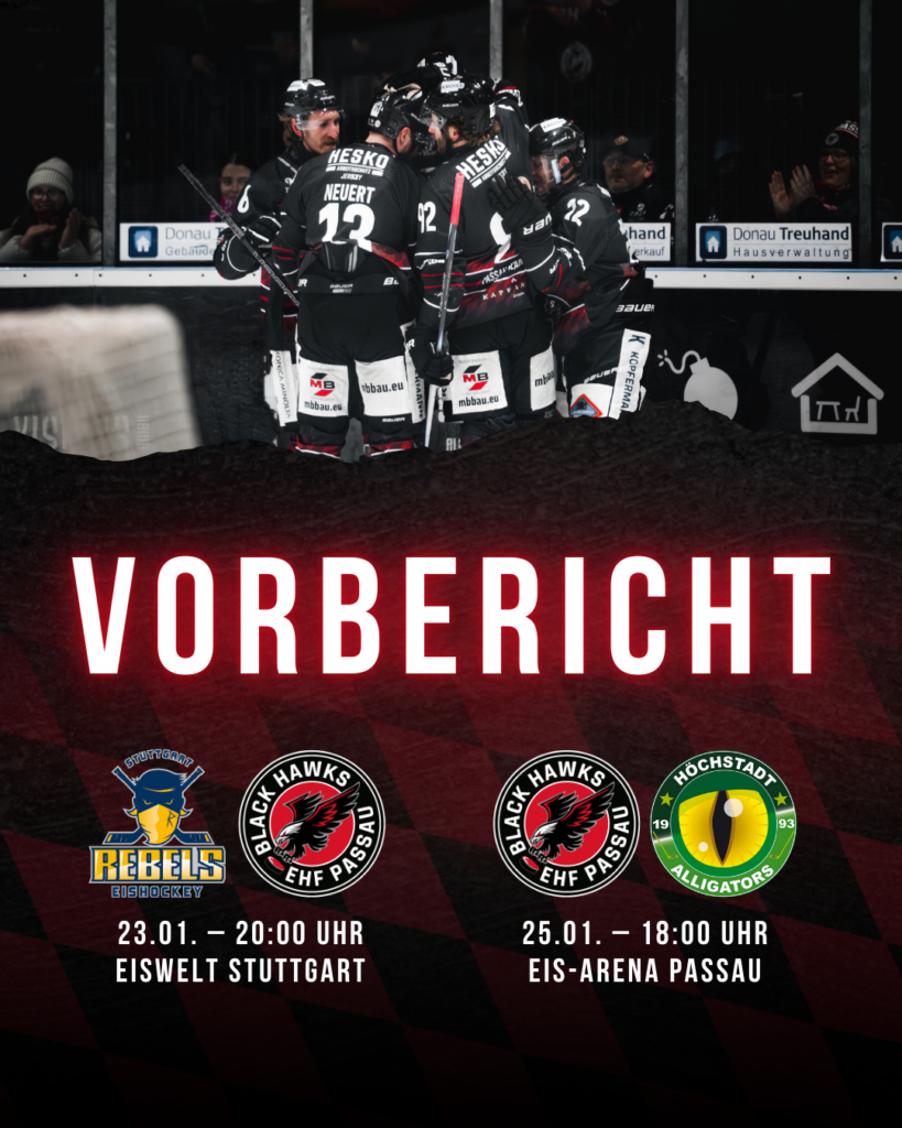 Nach der vergangenen Null-Punkte-Woche stehen die Passau Black Hawks am kommenden Wochenende unter Zugzwang. In zwei richtungsweisenden Partien gegen direkte Konkurrenten geht es um wichtige Punkte im Kampf um die Pre-Playoff-Plätze. Am Freitag reisen die Dreiflüsse-Städter zunächst zum Tabellennachbarn nach Stuttgart, ehe am Sonntag die Höchstadt Alligators in der Eis-Arena Passau zu Gast sind. Die […]
