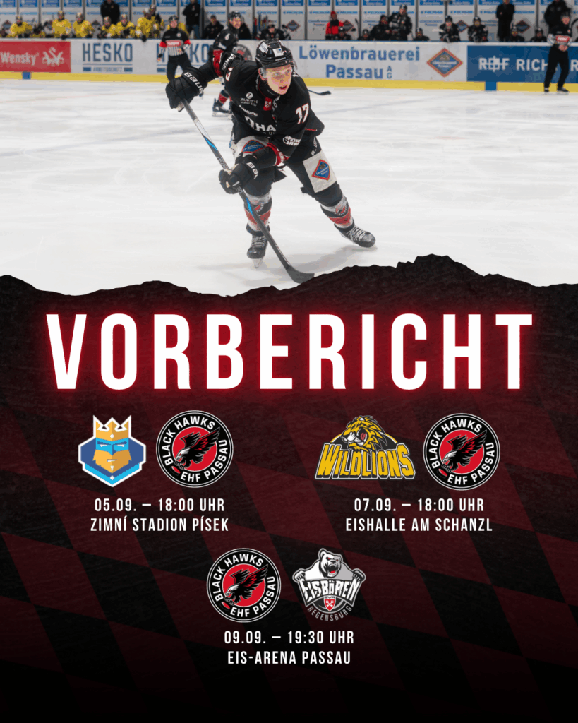 Passau Black Hawks verpflichten Leo Mössinger Die Passau Black Hawks eröffnen am Wochenende ihre Vorbereitungsphase auf die neue Saison. Zu Beginn warten gleich drei Testspiele in fünf Tagen auf das Team von Trainer Petr Bares. Den Auftakt machen die Black Hawks am Donnerstag, den 5. September (18 Uhr) mit einem Auswärtsspiel beim tschechischen Club IHC […]